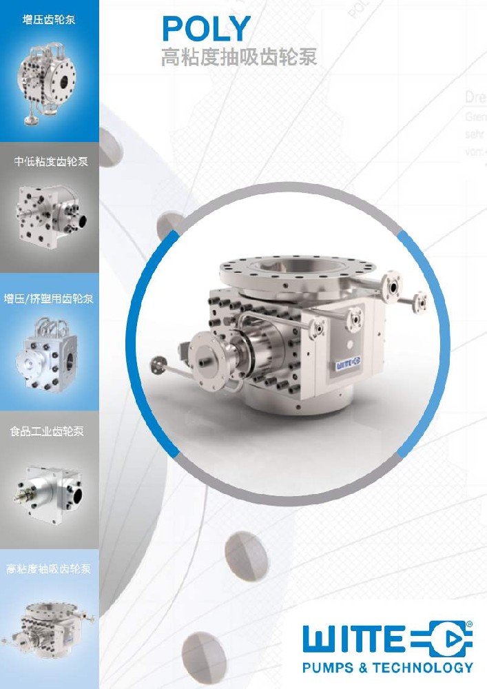 德国威特齿轮泵 WITTE PUMPS & TECHNOLOGY GmbH具有 CHEM /EXTRU/POLY/CHEM-MAGNET 等系列高精密乐竞(中国),采用模块化针对性设计,根据泵的操作条件, CHEM /EXTRU/POLY 泵的零件具有可互换性。威特泵用户可根据实际需要,采取液相加热或电加热方式,密封可选择机械密封 , 填料密封, , 螺旋迷宫密封 ( 动密封 ) ,真空螺旋密封及特殊组合的密封配置。威特泵具有直齿、斜齿,以及威特**设计的高精度、低脉动、低温升、低剪切的人字形齿,针对不同的输送介质,在泵的材质选择上,威特可提供钛合金、铬镍合金、哈氏合金、钽合金,陶瓷,金属陶瓷的组合材质等。德国威特泵业技术有限代表高黏度流体和熔体齿轮泵****技术。WITTE泵设计——“高精度人字型齿”,斜齿轮大幅度降低了平行外啮合齿轮在高压下的脉动。而对于挤压、聚合、合成、化工等工艺中,要求泵的出口压力波动非常小时,如在高质量的管材、**次的薄膜、片材挤塑机上,使用“高精度人字型齿”能够更**的**压力和流量的波动。与塑料及聚合物工艺的传统设计相比,在同等排量下,“高精度人字型齿”允许使用加粗的轴颈。此结构可以降低进出压力对轴承的负载,同时压差范围更大,可以达到350Bar,泵进出口两端在高压下工作时,轴承温升很低。人字型齿轮的另一特点是对介质的剪切力较小。